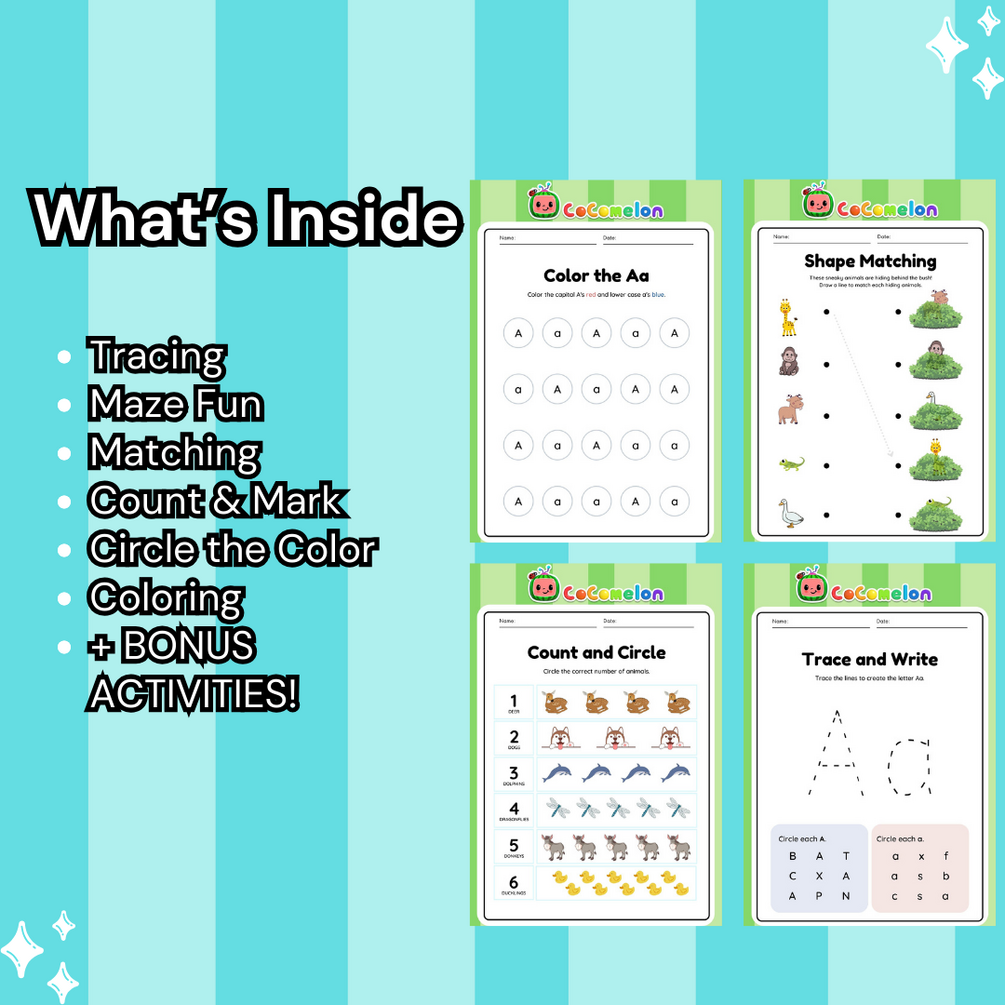 Kids Activity Workbook Cocomelon-Inspired | Printable PDF with Coloring, Tracing, & Games
